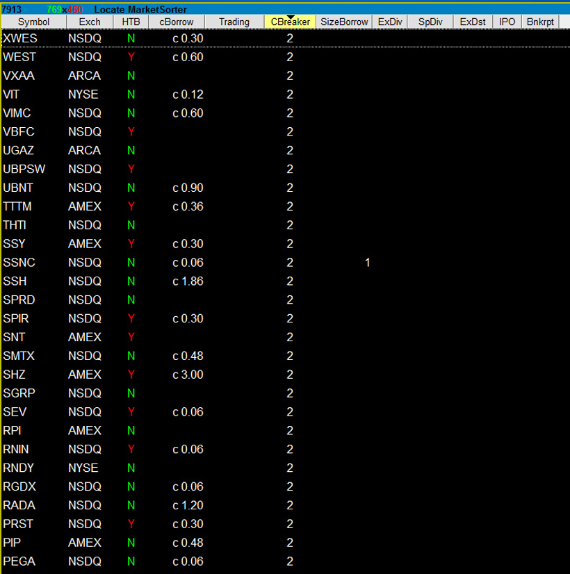 With the Takion locator a client can view all HTB's and sort by over 50 columns like Symbol, Exchange, Cost to Borrow, Trading Status, Circuit Breaker Status and Shares Already Borrowed.